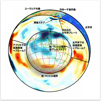 図6: 地震波トモグラフィーで見たマントル内部の地震波速度の分布